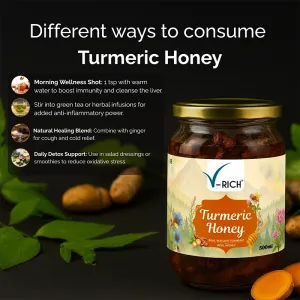 • Infused with Turmeric: The V-Rich Turmeric Honey is crafted to support and enhance your immune health. Add it to your wellness journey to improve your overall health.