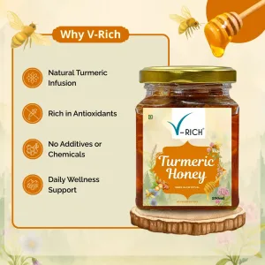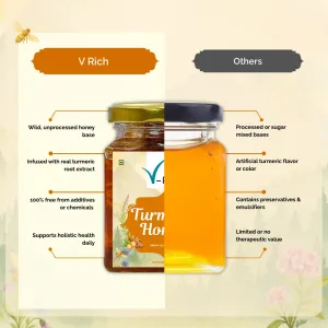 • Infused with Turmeric: The V-Rich Turmeric Honey is crafted to support and enhance your immune health. Add it to your wellness journey to improve your overall health.